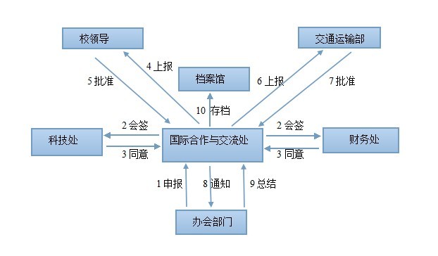 6上報:校領導同意后,國際合作與交流處負責行文報交通運輸部國際合作司審批