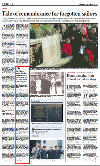 “The Chinese sailors played an important role in the victory in the war,” he said. “They should not be forgotten.”