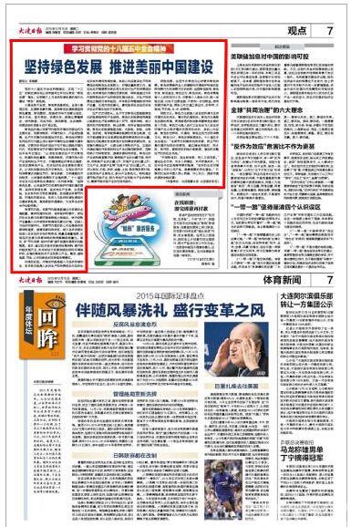 黨的十八屆五中全會明確提出,實現“十三五”時期發展目標必須牢固樹立并切實貫徹“綠色發展”理念。這明確了人與自然和諧發展的現代化建設“綠色”新格局。